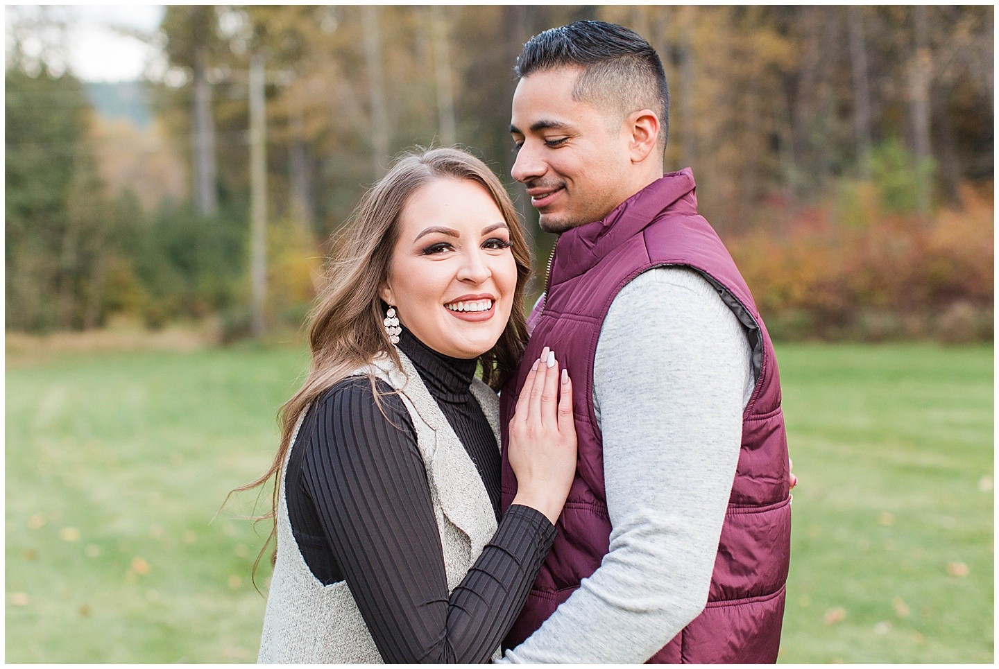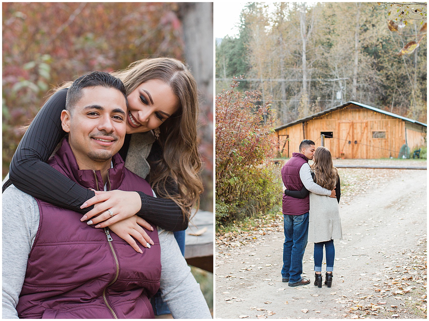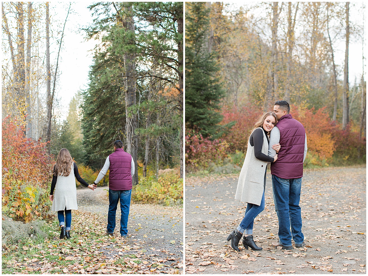 Some things that I absolutely love are, vintage/antique items, bright colors, being outside and autumn.The reason I’m telling you this is because all of that combined in perfection for this session!I love that Maribel chose a dress that had a vintage feel to it, and when I saw the dilapidated car on the property I knew it was going to be one of my favorite shots.The time I spent with these two was so enjoyable and from the very beginning they were just the sweetest couple and genuinely love being together.The cute comments and way they just naturally showed their relationship was the best.We were so far out in the woods that we even saw bear poop on the trail we were on-I had never seen that in real life before!Thankfully the closest we came to a bear was guard dog but that gives you an idea of the amazing location!I don’t exactly live close to this area but it was totally worth the drive to be able to hang out in such a serene setting.I hope you love these as much as I do!
